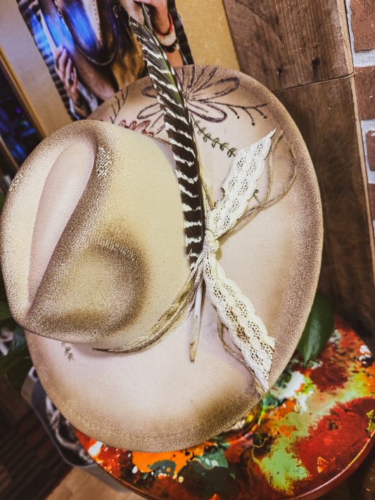All hats in this collection are sold out, but here for some inspiration for those that want one customized but aren’t quite sure where to start. Each hat is unique and one of a kind and won’t be recreated without customers approval, but we can sure make you something similar with your own special flare!