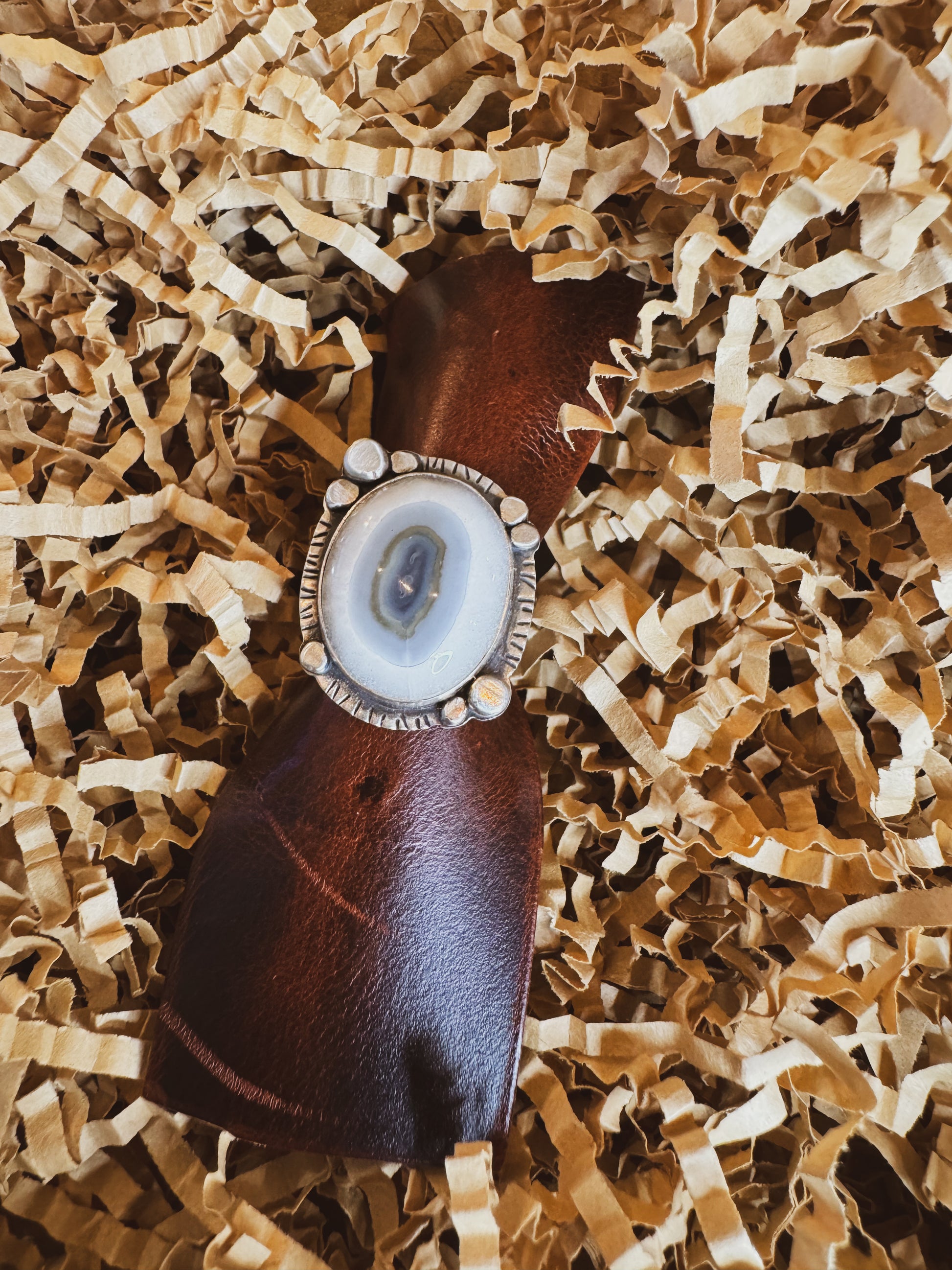 Size 7 Sterling Silver and Eye Agate Statement Ring