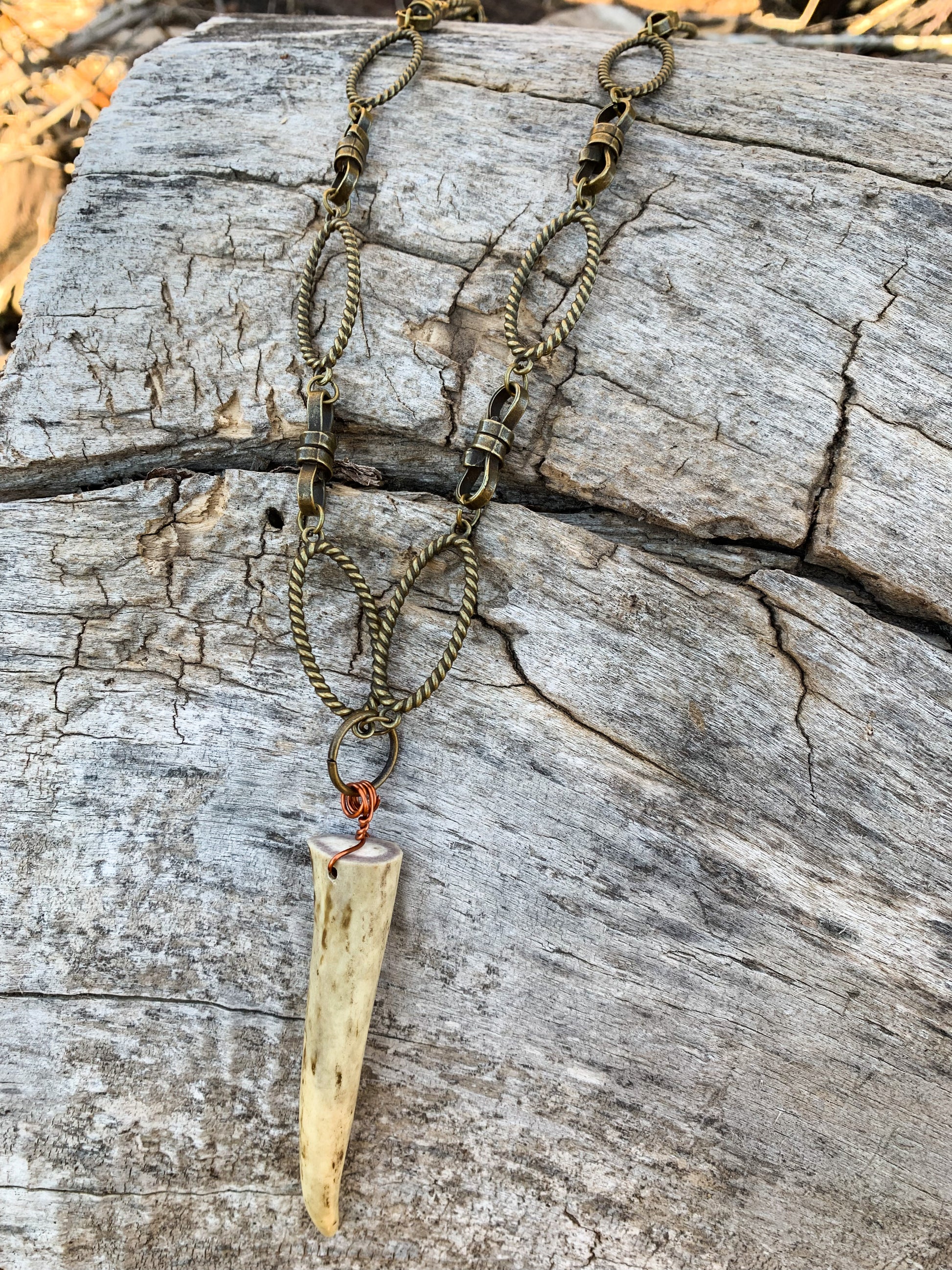 Brass Rope Antler Necklace
