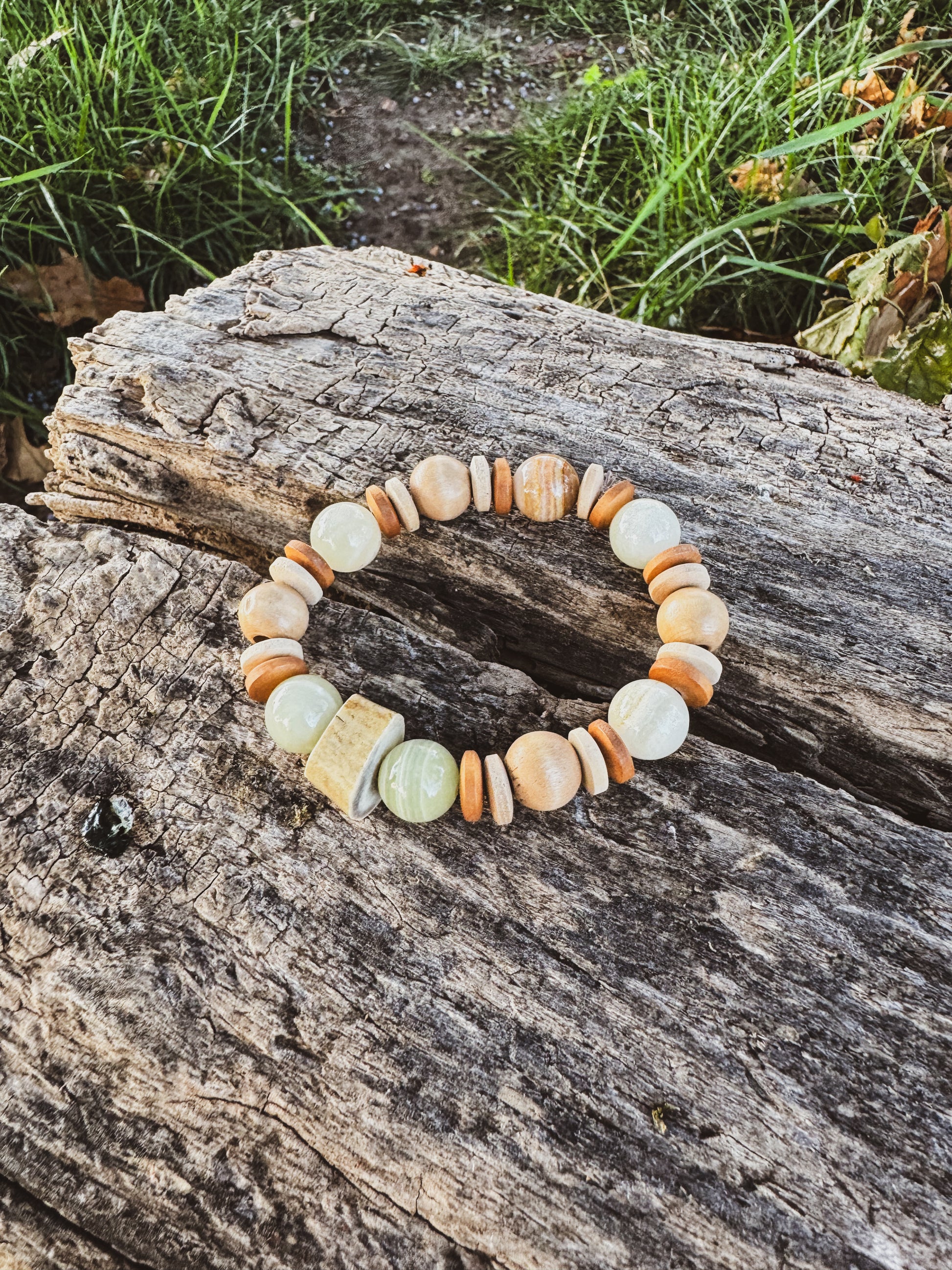 Beautiful glass and wooden beads, matching the Canton Antler Necklace, with a small authentic antler piece. Handmade. One of a kind.