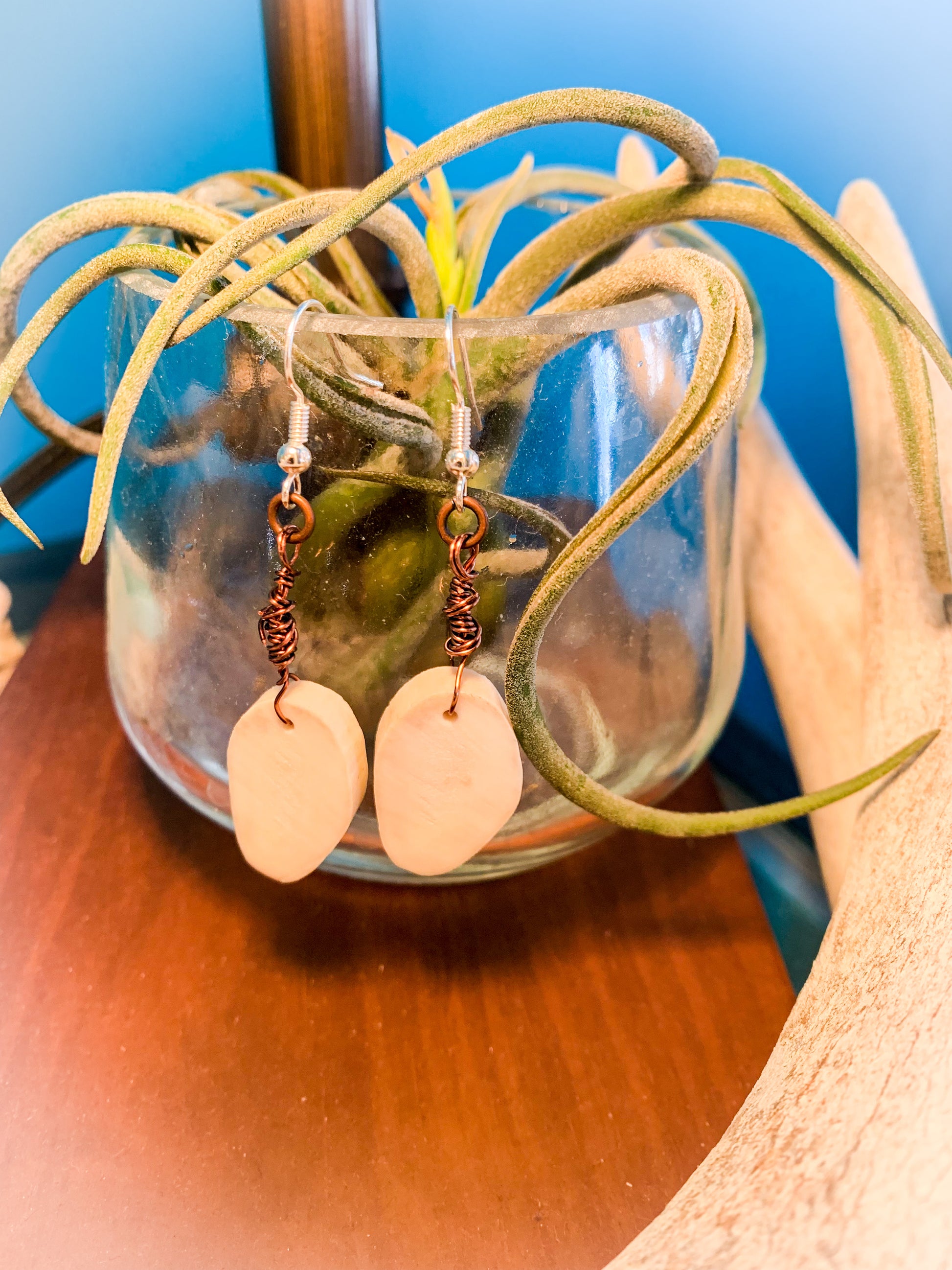 Lightweight and simple! Wrapped copper wire with two slab antler pieces!