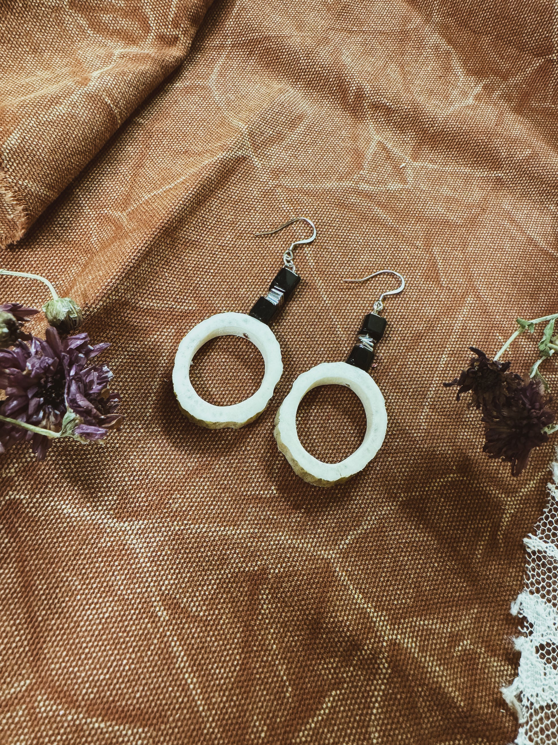 These Creek Antler Earrings effortlessly blend nature and style. With black square beads and silver slab accents, they feature hollowed out antler pieces for a unique and elegant touch. Enhance your outfit with these one-of-a-kind earrings that showcase your appreciation for the great outdoors. Handmade. One of a kind.