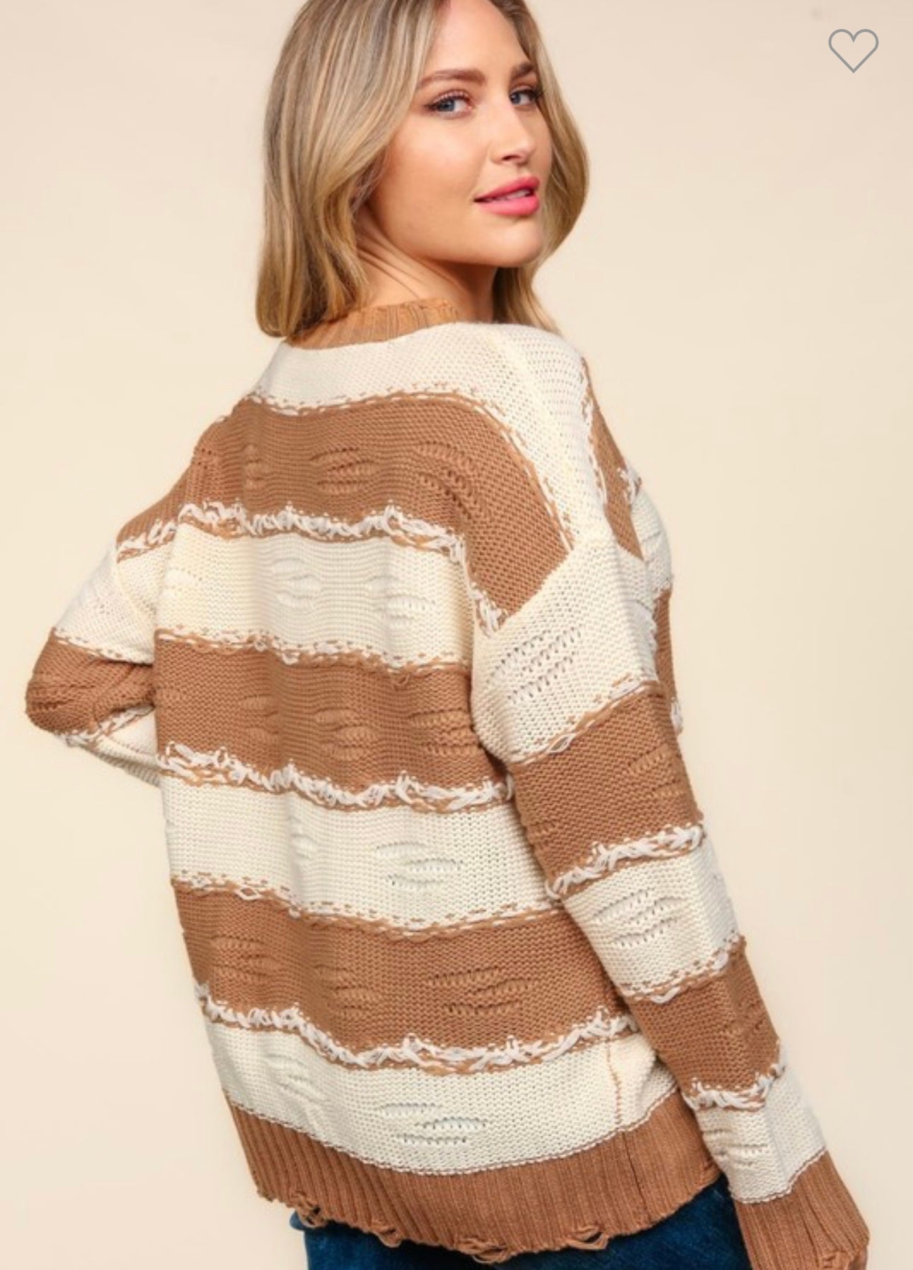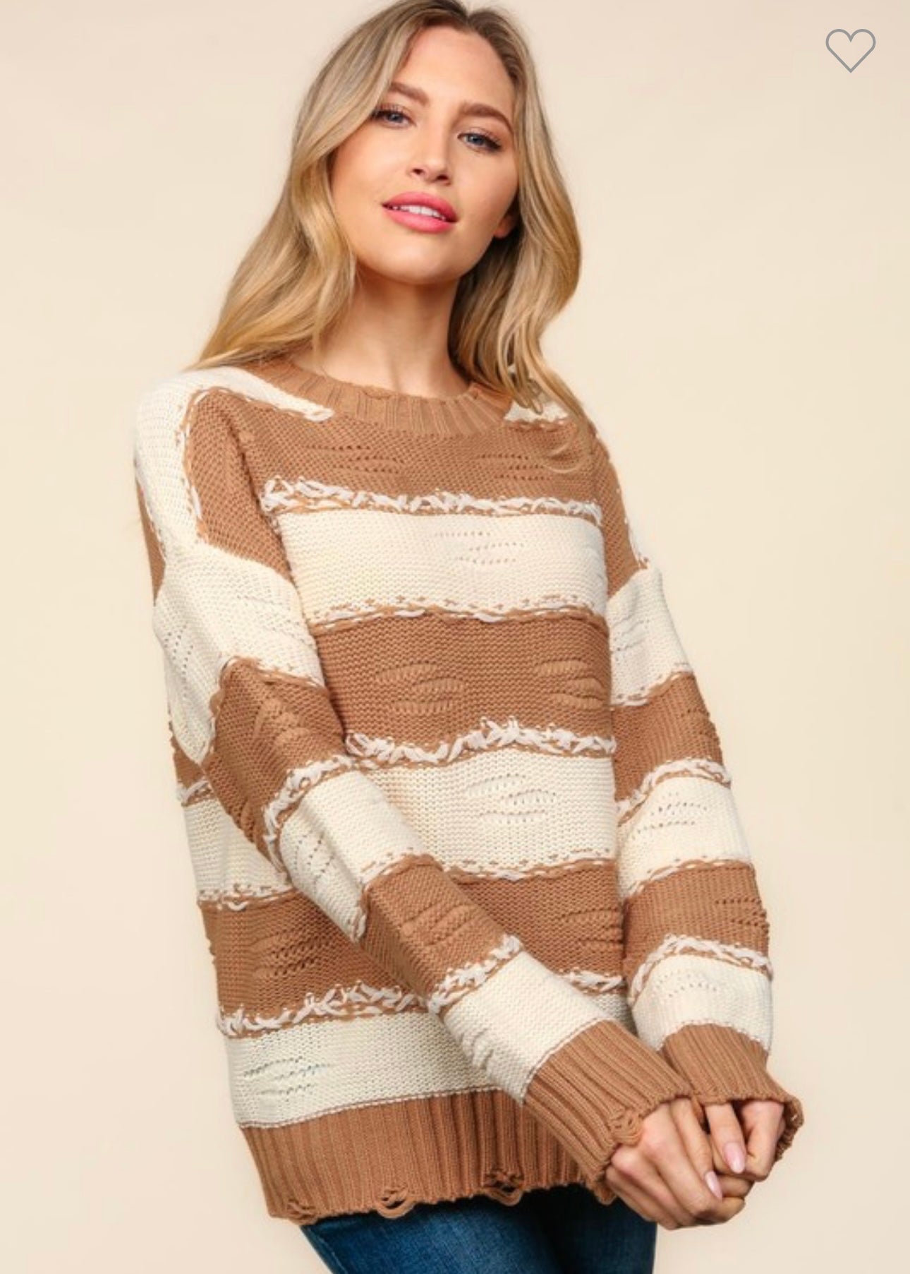 Crafted with a distressed design, our loose sweater adds a touch of edge to your outfit. Made for comfort and style, this sweater is perfect for a casual day out or a cozy night in. Made with quality materials, it's a must-have for any fashion-forward individual. True to size.