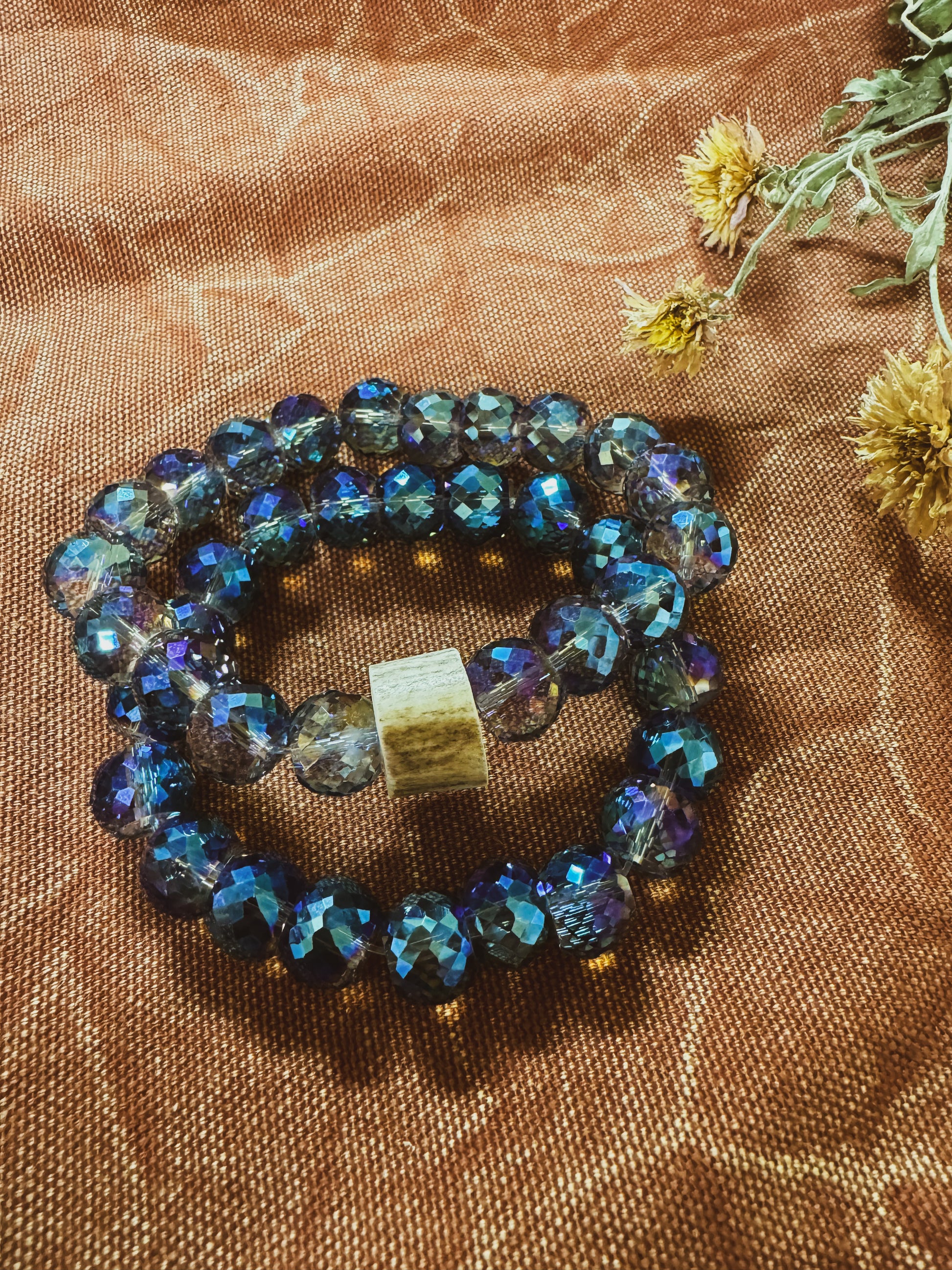 Each bracelet in the Galaxy Antler Bracelets collection features iridescent beads and a small antler piece. The unique combination of materials creates a stunning and eye-catching accessory that is perfect for any occasion. Add a touch of natural beauty to your outfit with these one-of-a-kind bracelets. Handmade. One of a kind.