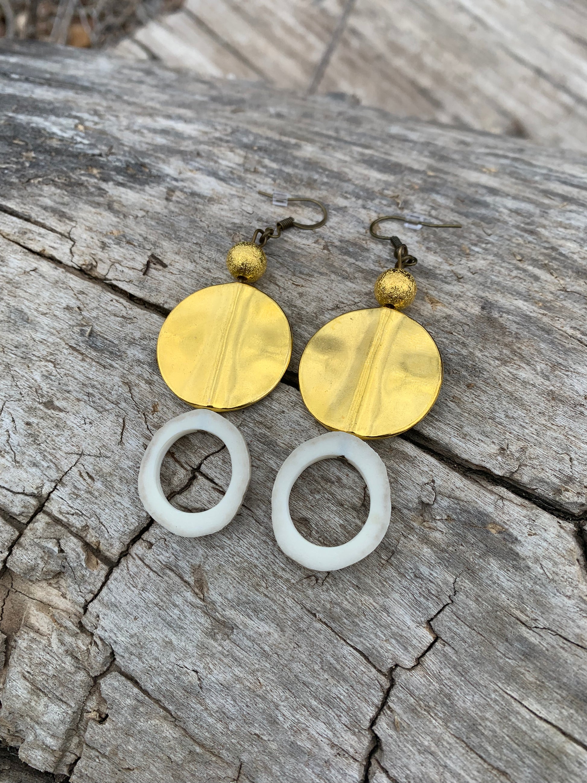Gorgeous golden slab pieces with hammered texture design and a hollowed out antler piece.