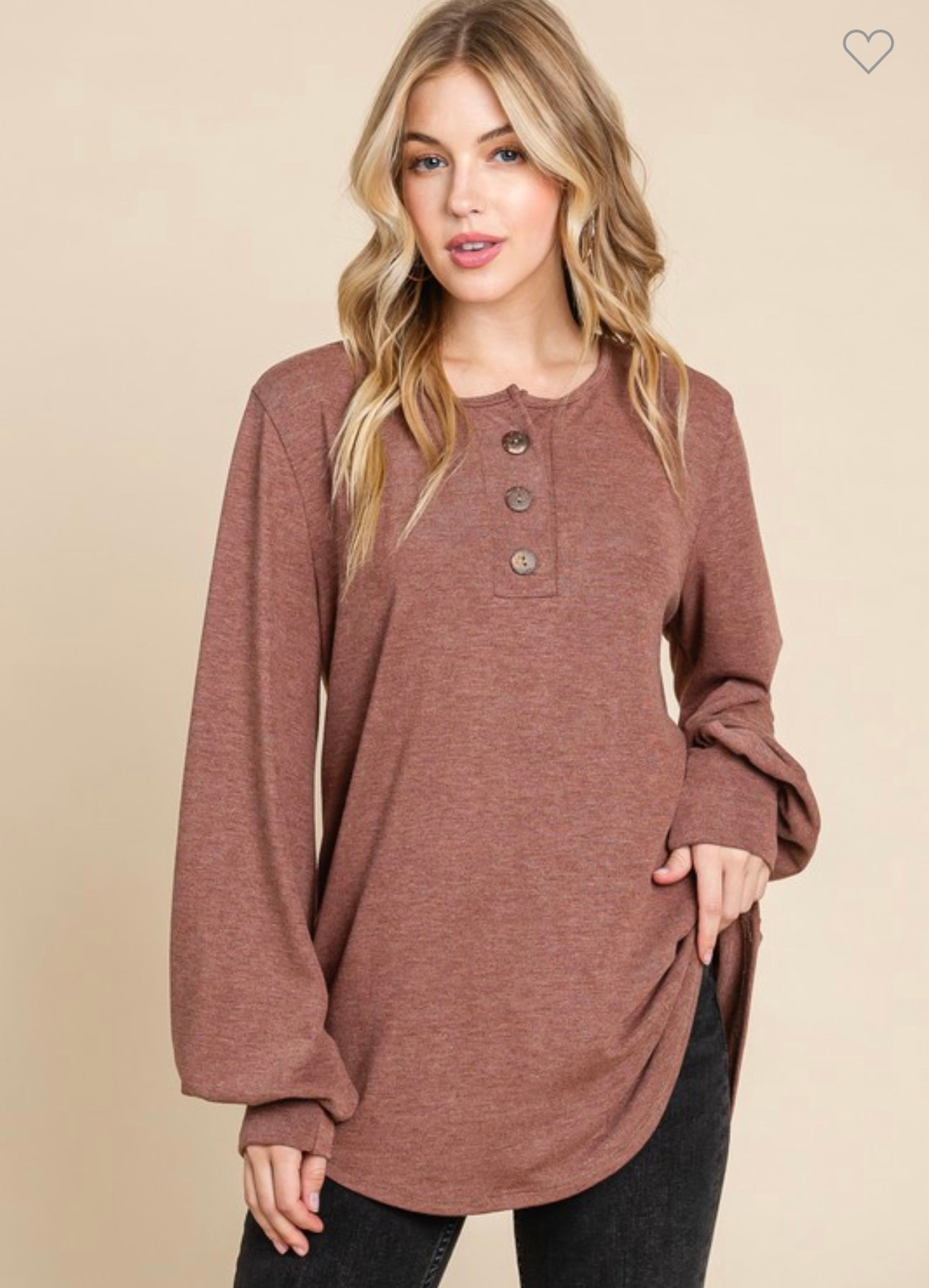 This Henley Blouse boasts a soft knit fabric, button front detail, and relaxed fit. Its puff sleeves add a touch of charm to any outfit. Crafted with comfort in mind, this blouse is perfect for both casual and professional occasions. Dress it up or down, the possibilities are endless. Made in the USA 🇺🇸