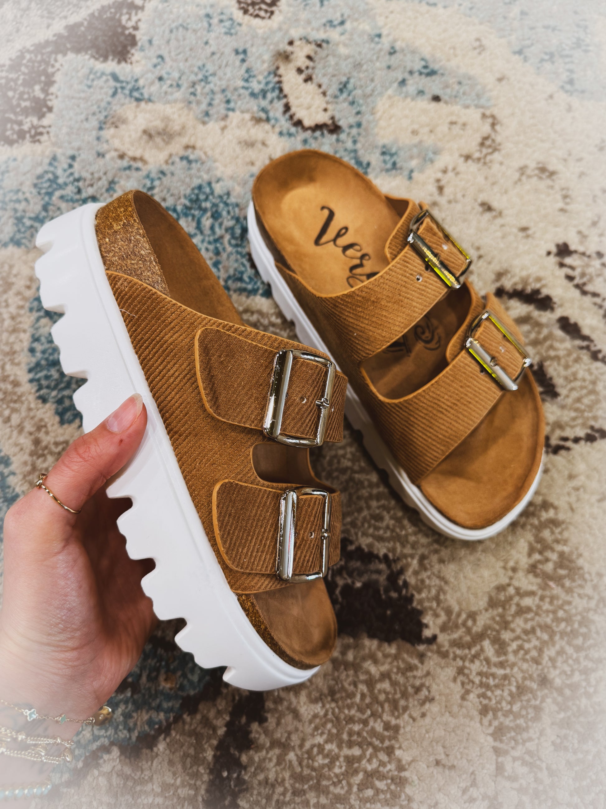 Jazmin by Very G is a durable sandal with a thick sole and large double buckle design, perfect for all-day wear. Its sturdy construction provides comfort and support, making it a practical choice for any occasion.