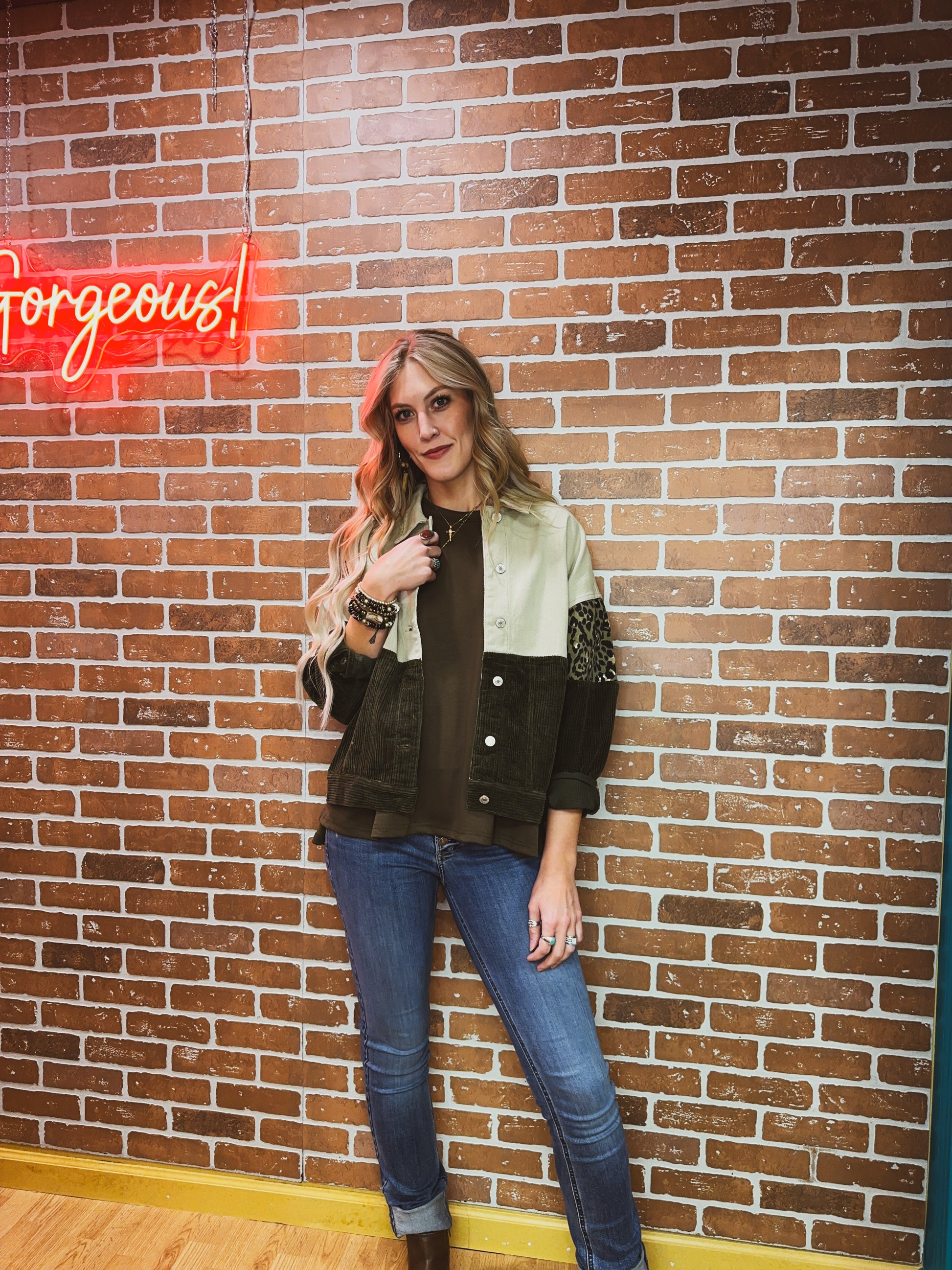 This stylish Leopard Mix Jacket features a striking color block animal print design and convenient side pockets. With its bold pattern and functional pockets, this jacket is perfect for adding a touch of flair to any outfit while keeping your essentials close at hand. Bre is wearing size medium.