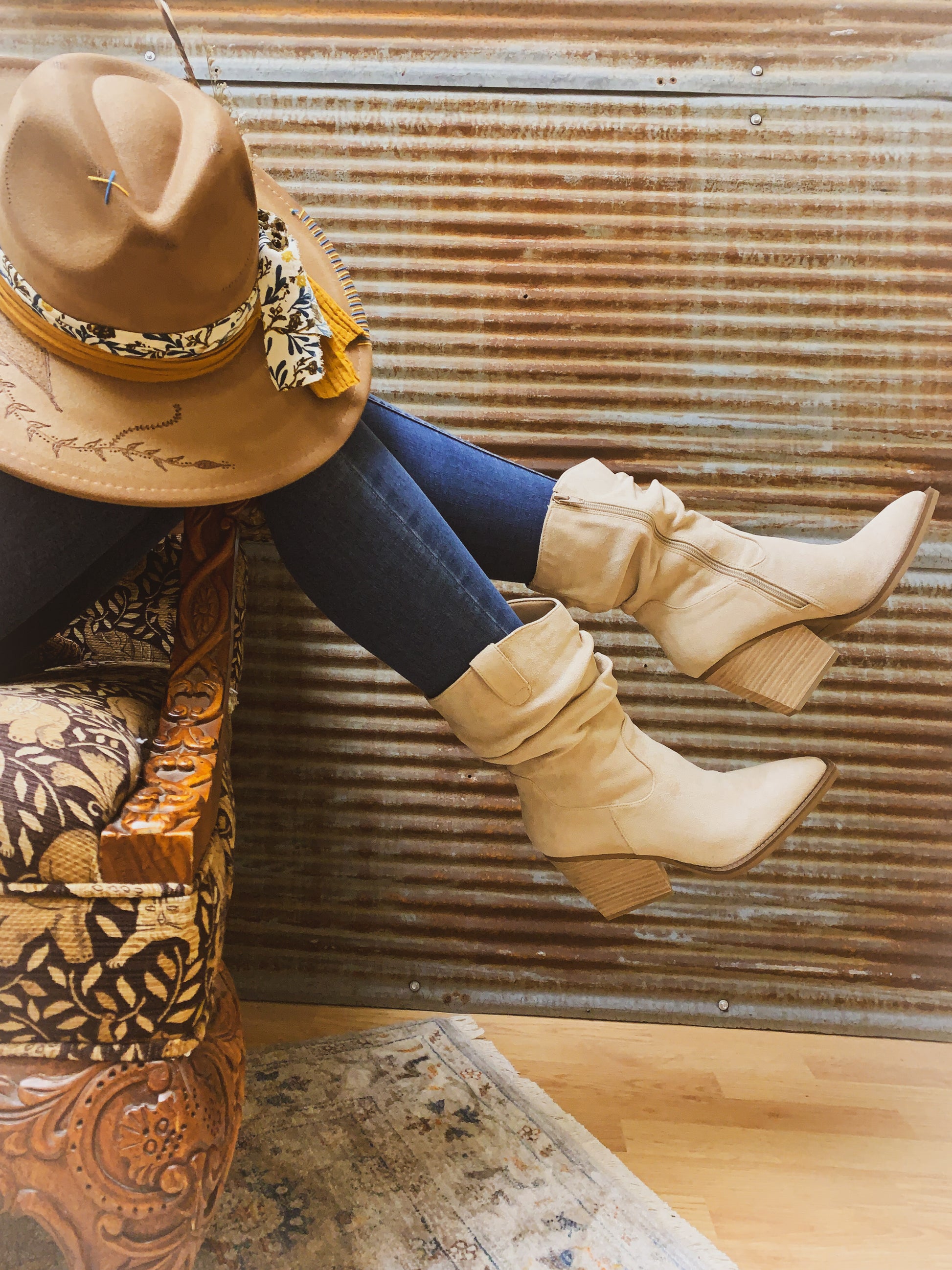 Gorgeous light tan boot with a cute 3” heel and lots of cushion and arch inside! True to size.