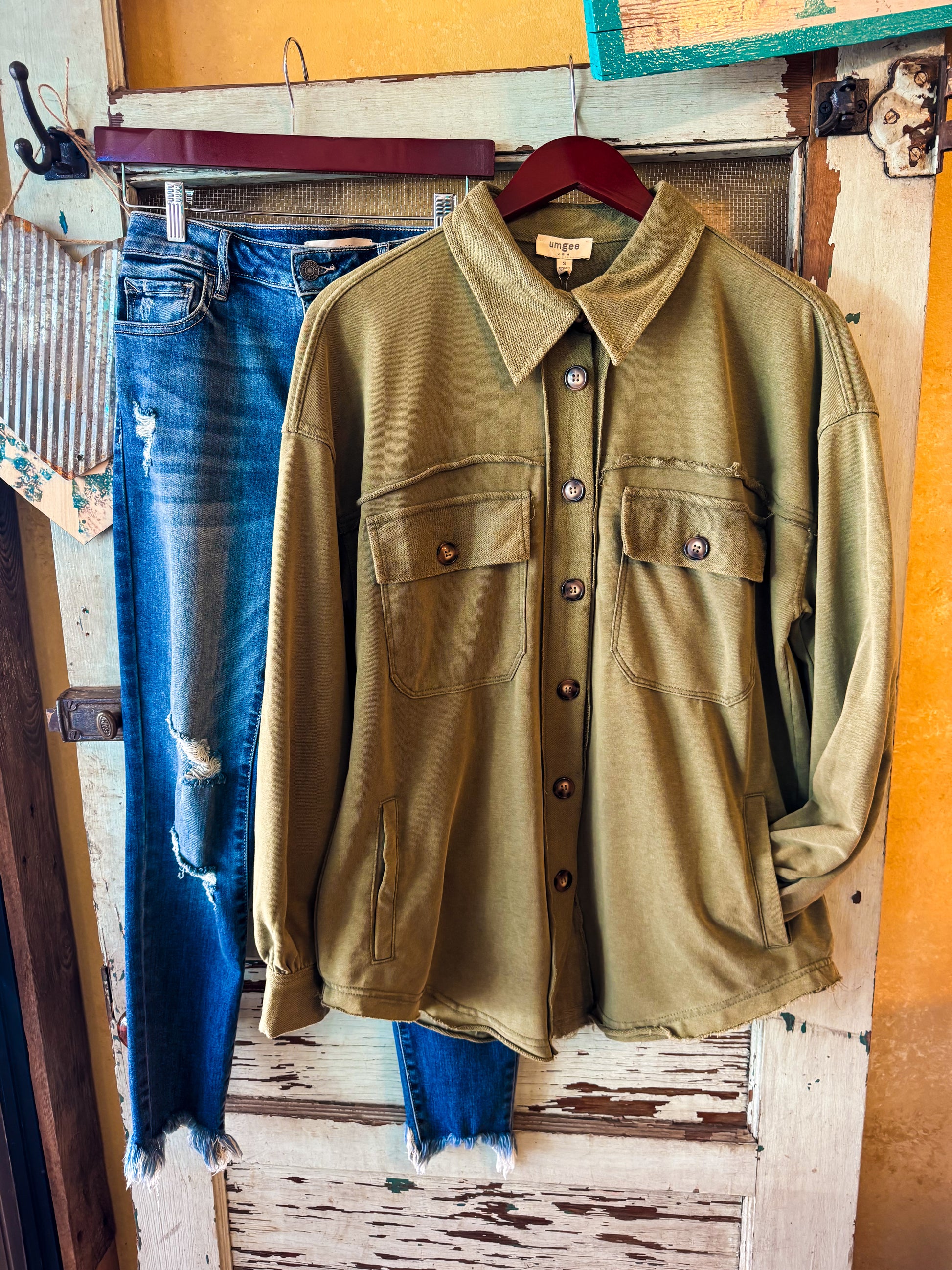 The Olive Shacket is a versatile and functional addition to any wardrobe. Made with lightweight materials, this shacket features functioning buttons and pockets for added convenience. Perfect for layering, it offers practicality and style for any occasion.