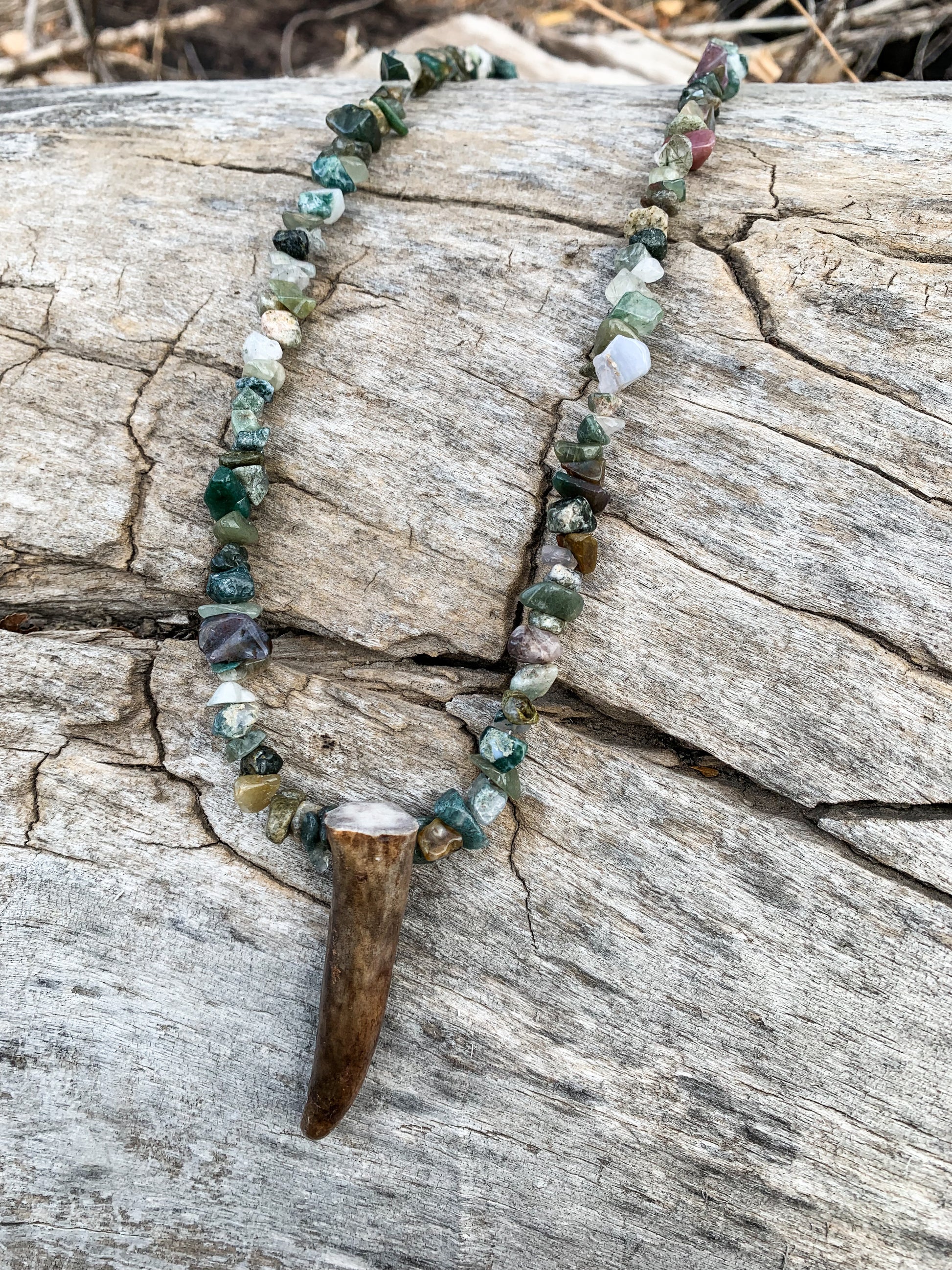 Small polished rocks with a small naturally dark authentic antler piece. Handmade.