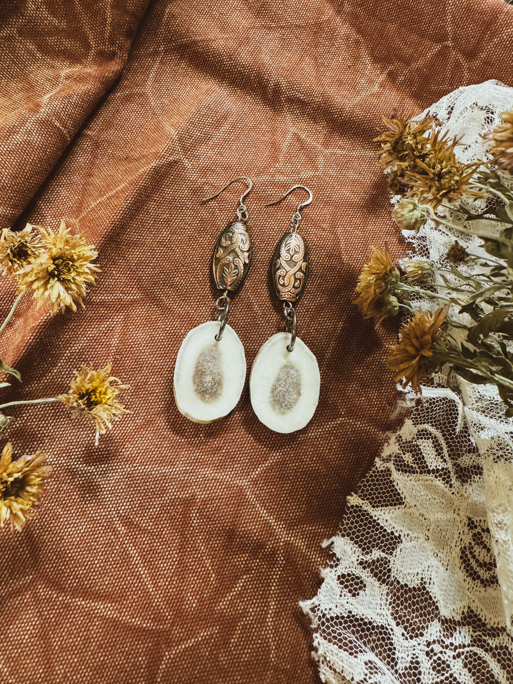 These Simply Southern Antler Earrings combine the rustic charm of smoothed copper and silver with the elegance of antler to create a unique and versatile accessory. The copper and silver materials provide durability and sheen while the antler adds a touch of nature to any outfit. Handmade. One of a kind.