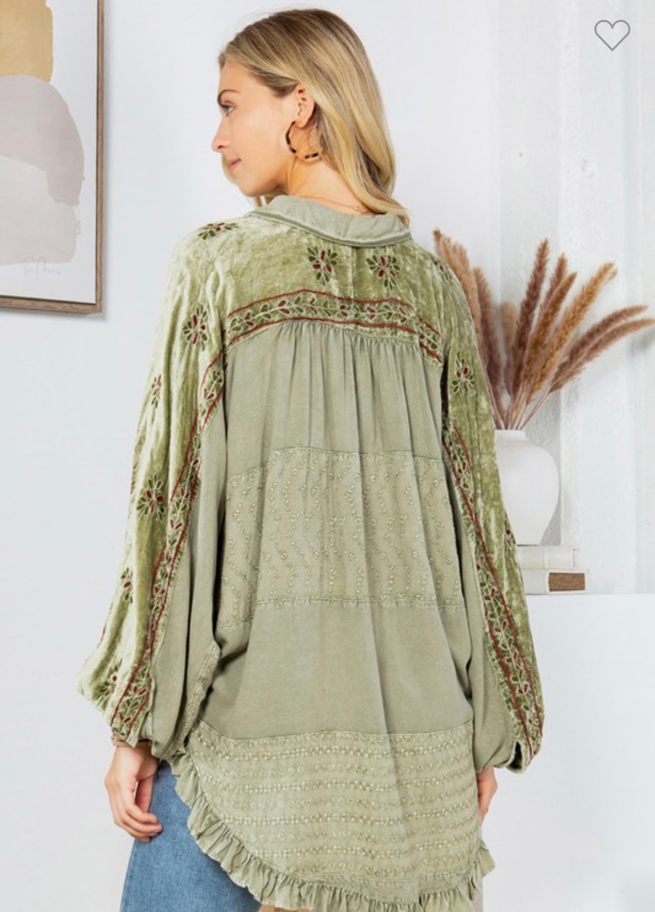 Embrace bohemian chic with this enchanting button-down top. Designed to offer a perfect blend of vintage charm and modern style, this top features a relaxed fit with voluminous sleeves and an asymmetrical hemline that adds a touch of playful elegance.
