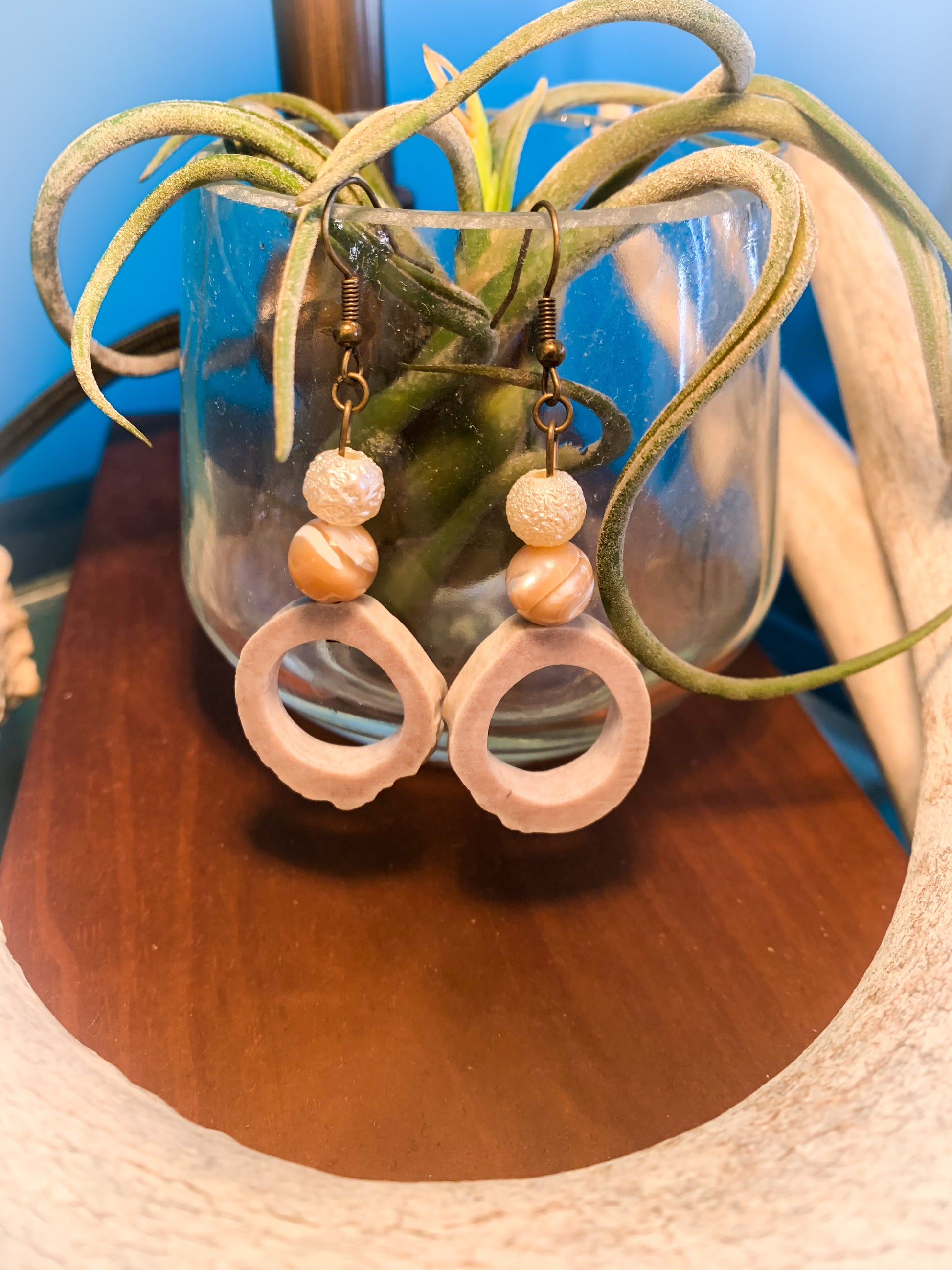 Swirly Pearl Antler Earrings