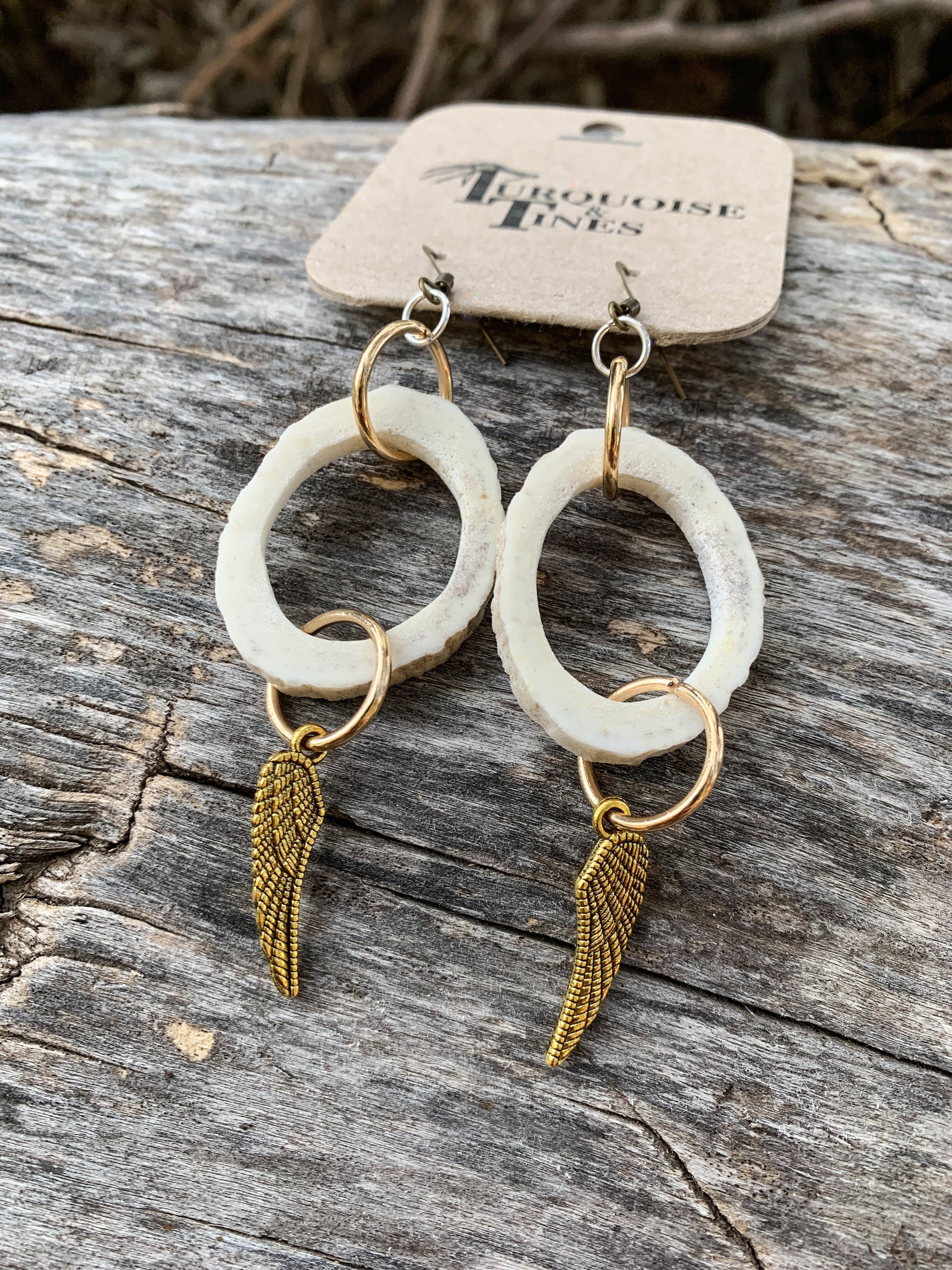 Elk Antler Feather Earrings