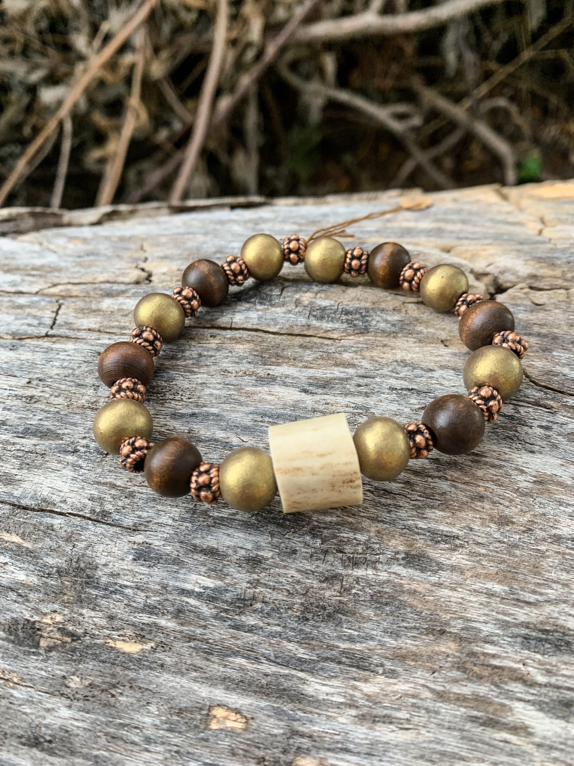Gold, Brown, and Copper beads make up this beautiful authentic whitetail antler bracelet! Handmade.