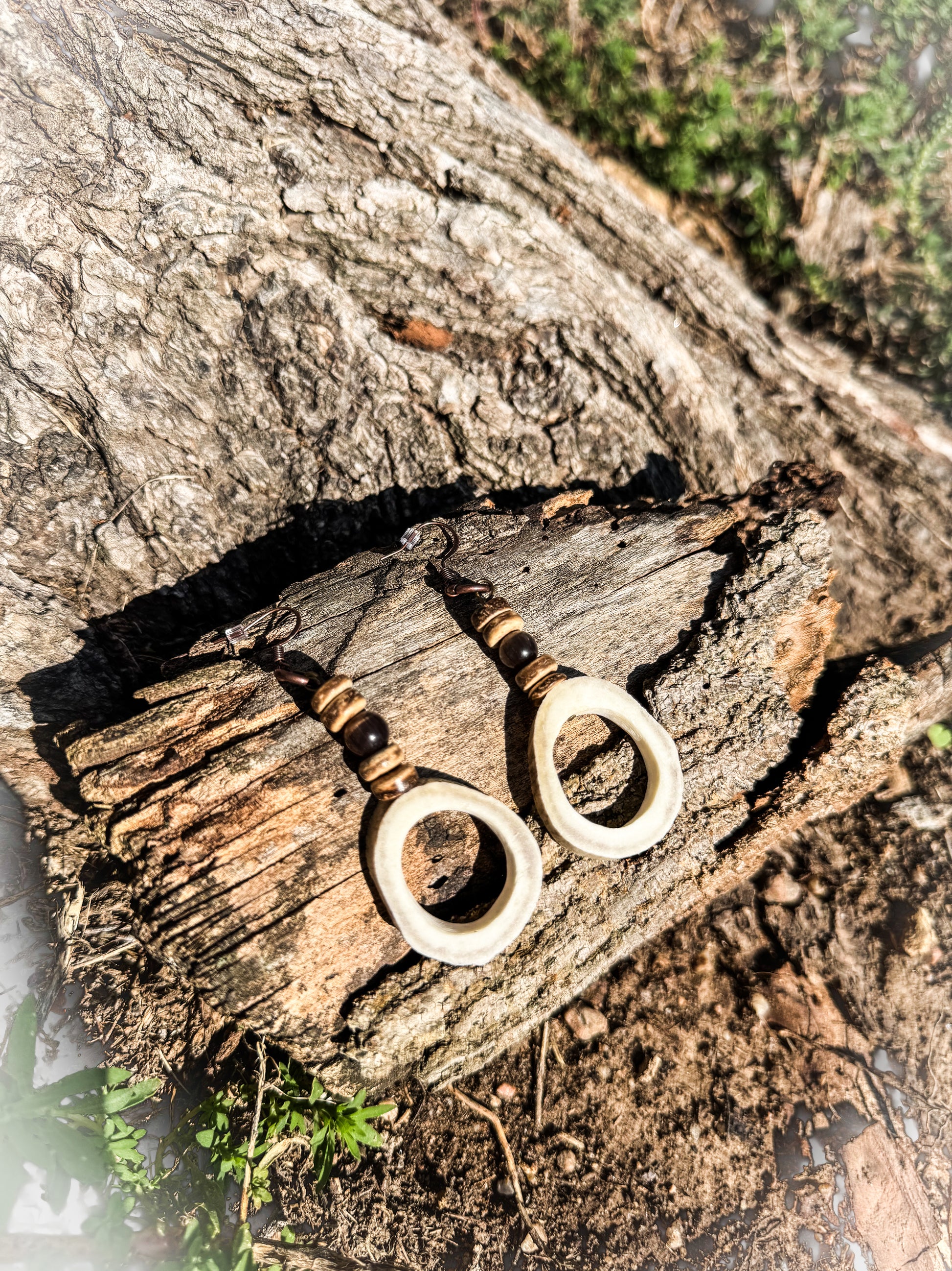 Crafted with wooden slab and glass beads, these Wanderlust Antler Earrings feature hollowed out authentic antler slabs for a unique and nature-inspired look. Perfect for adding a touch of rustic charm to any outfit, these earrings are a must-have for any jewelry collection. Handmade. One of a kind.
